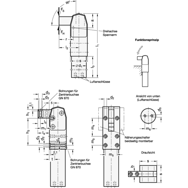 Das max. Spannmoment der Kraftspanner GN 864 wird in der Endstellung des Spannarmes erreicht. Deshalb sollte der Spannvorgang möglichst nahe dieser Position stattfinden.