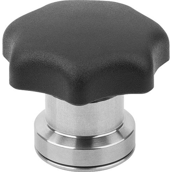 STERNGRIFF MIT SPANNKRAFTVERSTÄRKER D=M12, D1=63, H=47, FORM:K, THERMOPLAST SCHWARZ, KOMP:EDELSTAHL