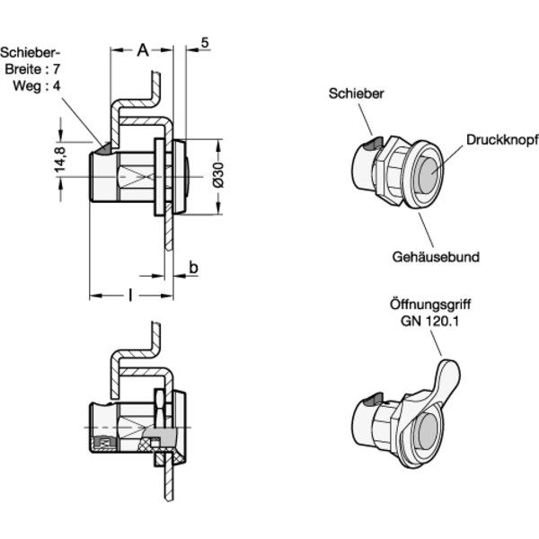 Im Übrigen werden Schnappverschlüsse GN 315.1 eingesetzt, wenn zum Betätigen der Tür kein Bedienelement erforderlich oder dieses separat angeordnet ist.