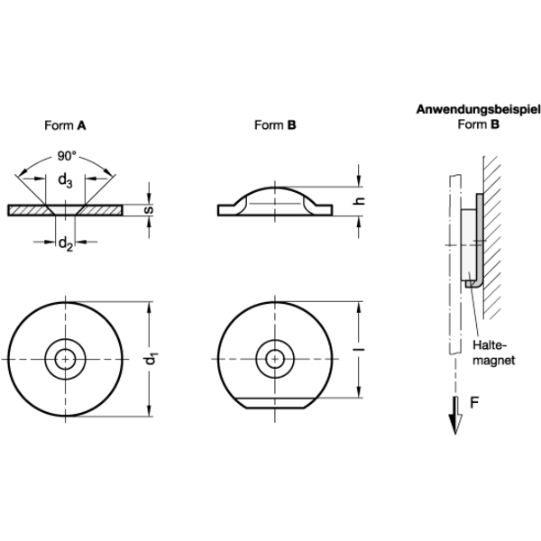 Haltescheiben GN 70 werden als Gegenstück zu Haltemagneten verwendet, wenn diese in Verbindung mit nichtmagnetischen Werkstoffen eingesetzt werden.