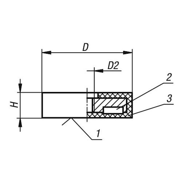 MAGNET FLACHGREIFER M04 H=6 NDFEB, RUND, KOMP:GUMMI, SCHWARZ, D=22