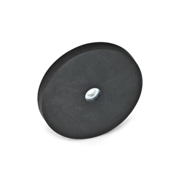 Haltemagnete GN 51.4 mit Gummiummantelung bilden im Verbund mit dem Stahlteil ein System, welches den Magnet schirmt, verstärkt und den magnetischen Fluss optimal auf die gummierte Haftfläche konzentriert.