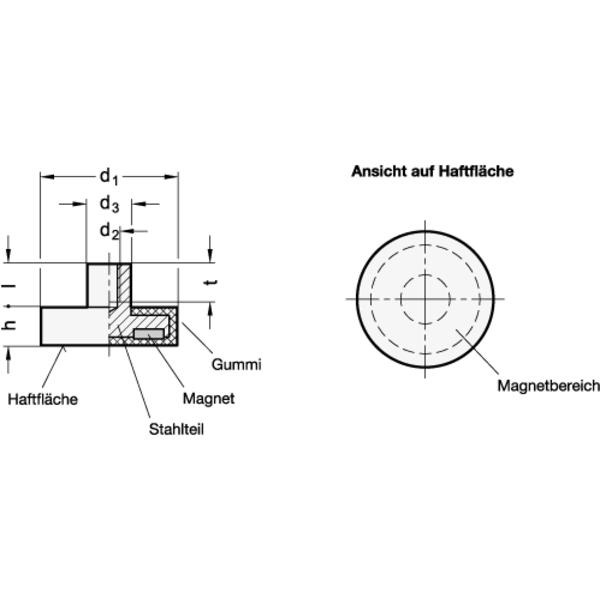 Haltemagnete GN 51.2 mit Gummiummantelung bilden im Verbund mit dem Stahlteil ein System, welches den Magnet schirmt, verstärkt und den magnetischen Fluss optimal auf die gummierte Haftfläche konzentriert.