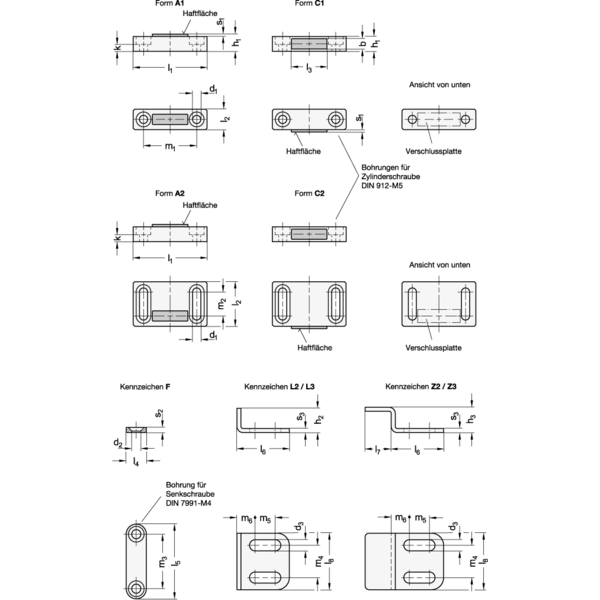 Bei Magnetverschlüssen der Formen A1 und A2 muss bei der Montage eine vollflächige Auflage im Bereich der Verschlussplatte gewährleistet sein.