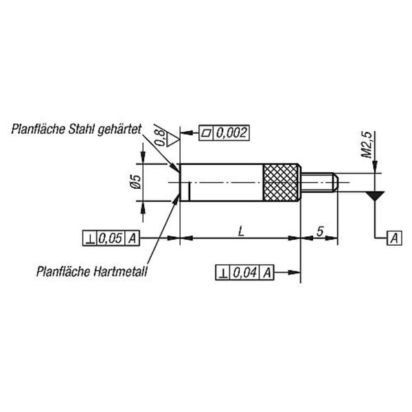 MESSEINSATZ MIT PLANFLÄCHE L=8 STAHL, KOMP:STAHL