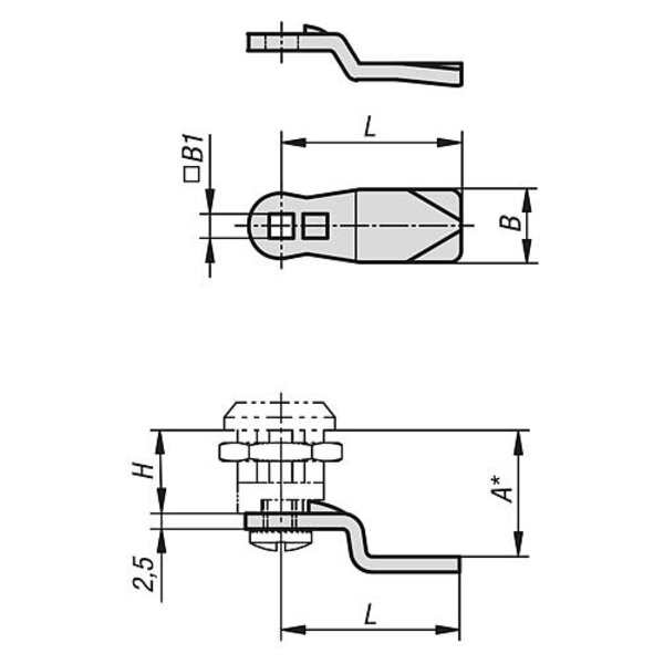 ZUNGE MIT ANSCHLAG, NACH UNTEN GEKRÖPFT L=25, A bei H 13,5=19,5, STAHL VERZINKT