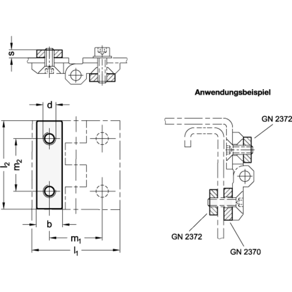- geeignet für Scharniere mit Bohrungsabstand m2 GN 235; GN 337; GN 337.1 GN 437; GN 7231; GN 7233; GN 7237: x