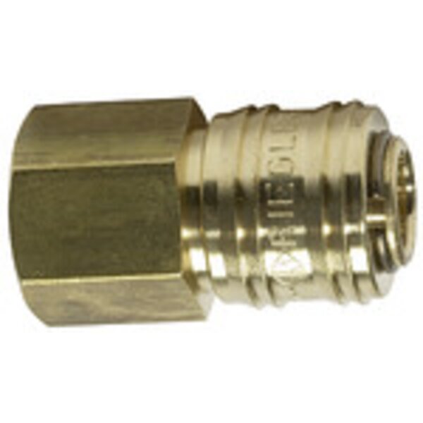 Schnellverschlusskupplung NW 7,2 »connect line«, MS blank, G 1/4 IG, Betriebsdr. 0 - 35 bar, Mediums-/Umgeb.temp. -20°C bis 100°C. Die universelle Einhand-Schnellverschlusskupplung in einseitig absperrender Ausführung zu einem enorm günstigen Preis. Durch die geschlossene Verriegelungshülse wird ein Verschmutzen der Innenteile verhindert. Bei Verwendung von Stahlnippeln kann diese Kupplung aufgrund ihrer gehärteten Verriegelungsstifte auch an Druckluftwerkzeugen verwendet werden. Kupplungen und Nippel mit dichtender Gewindebeschichtung: Montagefertige Polyacrylat-Gewindebeschichtung für sofortige und hohe Dichtheit ohne Aushärtungsprozess. Das dauerelastische Dichtmaterial kann bis zu 45° nachjustiert werden, ohne die Dichtheit zu beeinflussen. Gesundheitlich unbedenklich. Leichte Montage und Demontage. Um Verletzungen oder den "Peitschenhiebeffekt" zu vermeiden, empfehlen wir den Stecknippel beim Entkuppeln mit einer Hand festzuhalten. Diese Schnellverschlusskupplung eignet sich nicht für die direkte Montage an pulsierendem Werkzeug. Wir empfehlen die Verwendung unserer Vibrationsdämpfer, gemäß ISO 6150, § 7.1. Einsatzgebiete: Pneumatik, Maschinen- und Anlagenbau, Mess-, Regel- und Steuerungstechnik, Fertigungsindustrie, Medizintechnik, Chemie-/ Pharmaindustrie, Werkstätten, Automotive.