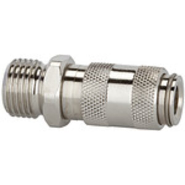 Schnellverschlusskupplung NW 2,7, Edelstahl 1.4305, G 1/8 AG, Betriebsdruck 0-35 bar, Mediums-/Umgebungstemp. -20 °C bis 200 °C. Einseitig absperrende Einhand-Schnellverschlusskupplung mit extrem kleinen Baumaßen und großem Durchgang bei geringem Druckabfall. Um Verletzungen oder den "Peitschenhiebeffekt" zu vermeiden, empfehlen wir den Stecknippel beim Entkuppeln mit einer Hand festzuhalten. Einsatzgebiete: Pneumatik, Maschinen- und Anlagenbau, Mess-, Regel- und Steuerungstechnik, Fertigungsindustrie, Medizintechnik, Chemie-/ Pharmaindustrie, Automotive, Nahrungsmitteltechnik, Offshore.