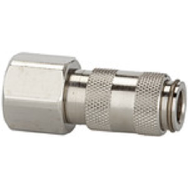 Schnellverschlusskupplung NW 2,7, Edelstahl 1.4305, G 1/8 IG, Betriebsdruck 0-35 bar, Mediums-/Umgebungstemp. -20 °C bis 200 °C. Einseitig absperrende Einhand-Schnellverschlusskupplung mit extrem kleinen Baumaßen und großem Durchgang bei geringem Druckabfall. Um Verletzungen oder den "Peitschenhiebeffekt" zu vermeiden, empfehlen wir den Stecknippel beim Entkuppeln mit einer Hand festzuhalten. Einsatzgebiete: Pneumatik, Maschinen- und Anlagenbau, Mess-, Regel- und Steuerungstechnik, Fertigungsindustrie, Medizintechnik, Chemie-/ Pharmaindustrie, Automotive, Nahrungsmitteltechnik, Offshore.