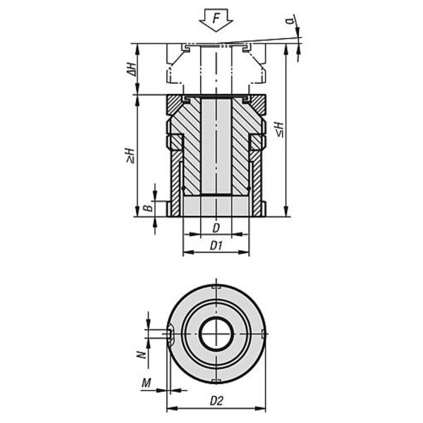 Die statische Zusatzbelastung F1 steht nach Abzug der Vorspannkraft (Schraube 8.8, µ m = 0,125) von der Gesamtbelastung F zur Verfügung.
