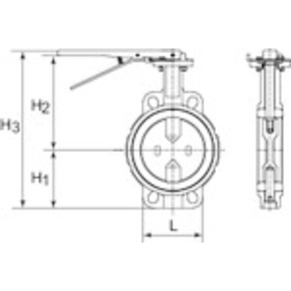 Zwischenflansch-Absperrklappe, Handhebel, Betriebstemp. -15 °C bis 120 °C, DN 40, PN max. 16 bar. Zwischenflansch-Absperrklappen mit Handhebel geeignet für Wasser/Dampf, Seewasser, Salzwasser, Ester, Keton, Alkali, Ätznatron, Natriumhydroxid. Nicht empfohlen für Kohlenwasserstoffe, Öle, Fette.