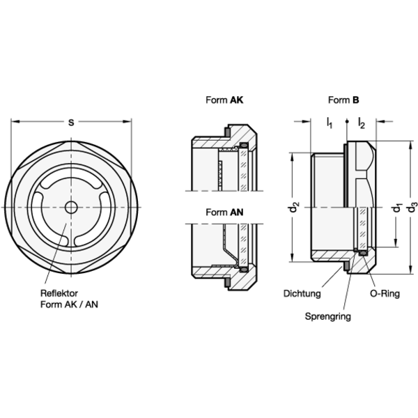 Der Außendurchmesser der Ölschaugläser mit dem zurückgesetzten Sechskant ist auf Einschraublöcher für Rohrverschraubungen DIN 3852 abgestimmt.