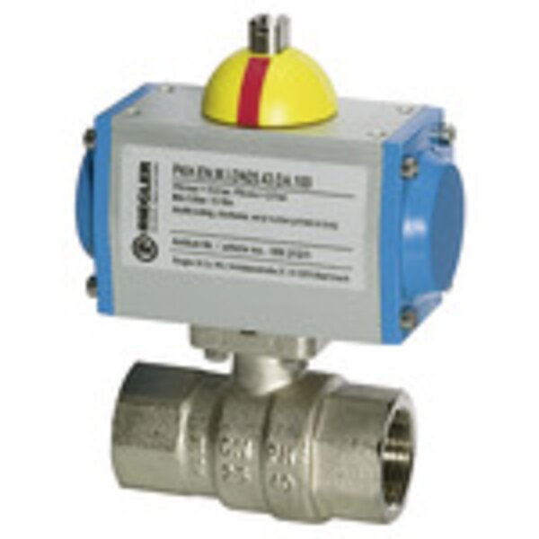 Messingkugelhahn, pneumat. Stellantrieb federschließend, Rp 3/4