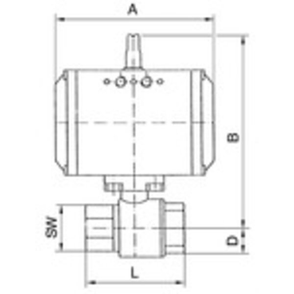 2-Wege-Messingkugelhahn, pneumat. Stellantrieb federschließend, MS vern., Betriebstemp. max. 70 °C, Rp 3/4, DN 20, PN max. 40 bar. 2-Wege-Hahn, voller Durchgang. Pneumatischer Schwenkantrieb in doppelt- oder einfachwirkender Ausführung und integriertem Stellungsanzeiger.
