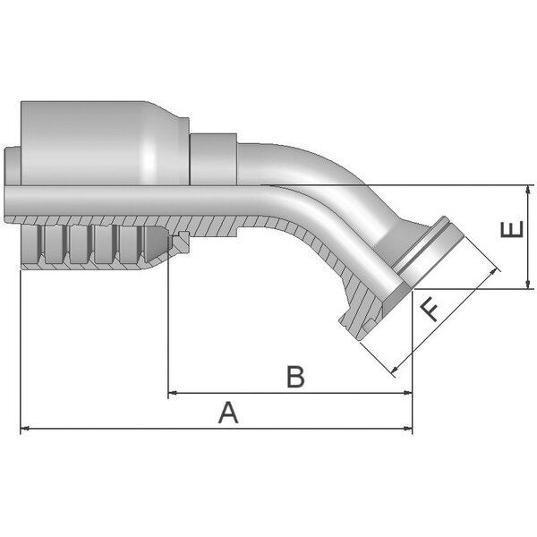 - Beschreibung Anschlusstyp: ISO 6162-2 - Flansch - schwere Ausführung - 45° Bogen