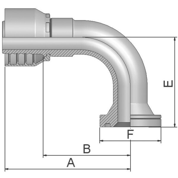 - Beschreibung AnschlusstypISO 6162-2 - Flansch -schwere Ausführung - 90° Bogen
