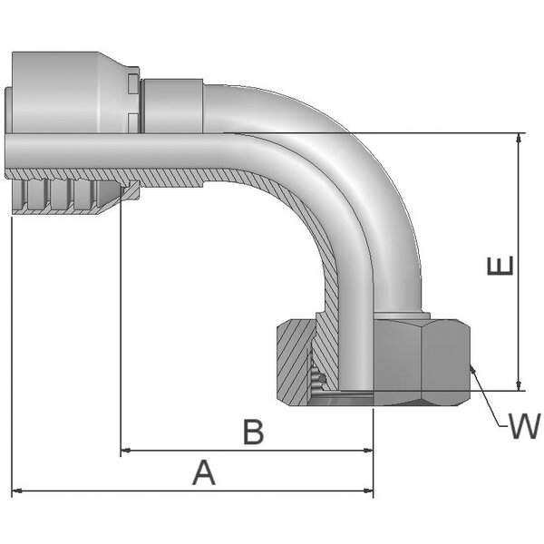 - Beschreibung Anschlusstyp: Dichtkegel mit Überwurfmutter und O-Ring - leichte Reihe - 90° Bogen