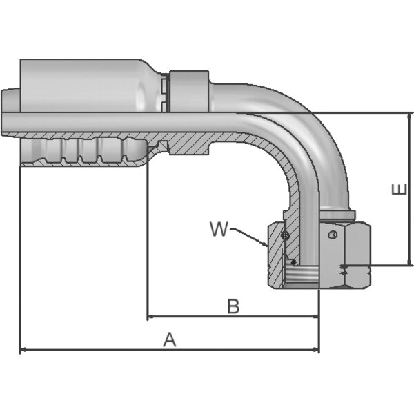 - Beschreibung Anschlusstyp: Dichtkopf mit BSP Überwurfmutter mit O-Ring - 90° Bogen (60° Konus)