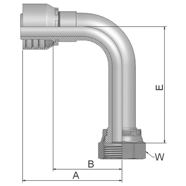 - Beschreibung Anschlusstyp: ORFS mit Überwurfmutter - 90° Bogen - extra lang