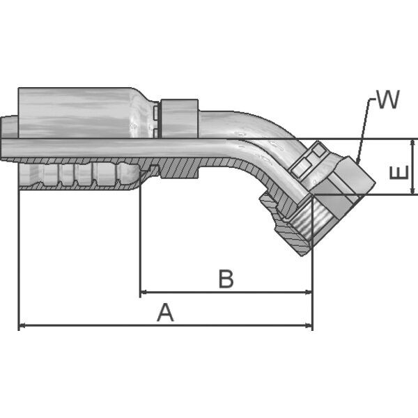 - Beschreibung Anschlusstyp: ORFS mit Überwurfmutter - 45° Bogen