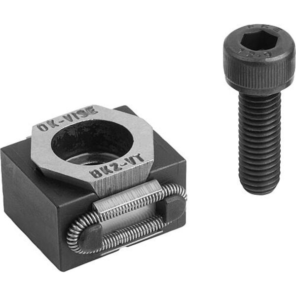 Wahlweise können die entsprechenden Keilspanner in einer Rasterbohrung oder T-Nut befestigt werden. Durch Eindrehen der Zylinderschraube DIN 912 bewegen sich die beiden Spannsegmente nach außen und drücken die Werkstücke gegen einen festen Anschlag.