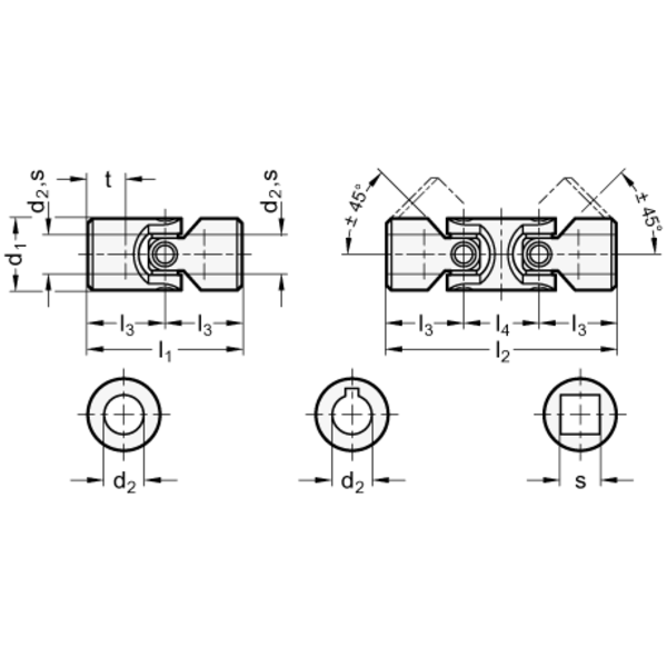 GANTER Nirosta-Kreuzgelenk mit Gleitlager, doppelt