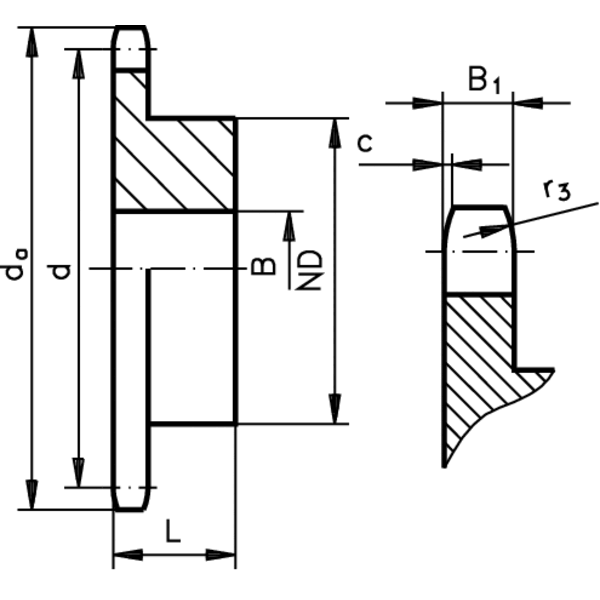 Kettenrad KRG mit einseitiger Nabe, 18 Zähne,Stahl