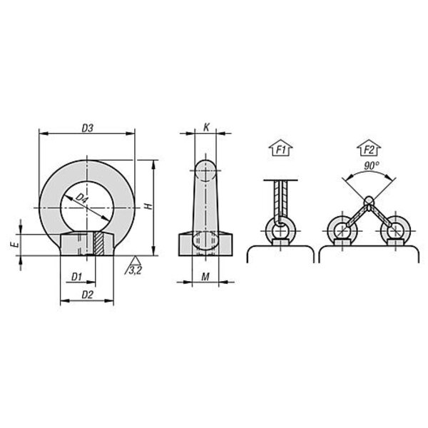 F2 Tragfähigkeit unter max. 45° pro Ringschraube.