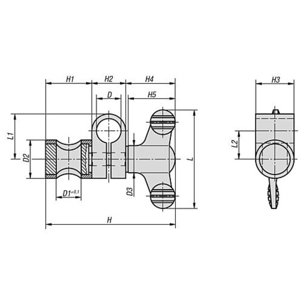 SPANNGELENK GR.5, MIT FLÜGELGRIFF, D=16, ALUMINIUM SCHWARZ ELOXIERT, D1=16, KOMP:STAHL HOCHGLANZVERCHROMT