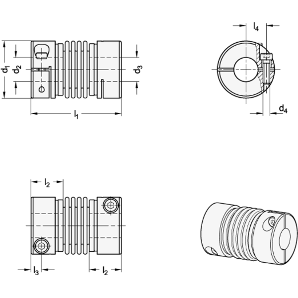 Metallbalgkupplungen GN 2244 übertragen Winkelpositionen und Drehmomente spielfrei und äußerst präzise. Der Metallbalg gleicht dabei Wellenversätze und Lauftoleranzen zuverlässig aus. Durch die Klemmnaben sind Metallbalgkupplungen sehr montagefreundlich.