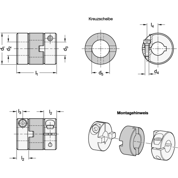 Kreuzschieberkupplungen mit Klemmnabe