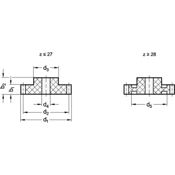 Die Stirnzahnräder haben eine Evolventenverzahnung mit einem Eingriffswinkel von 20°. Weitere Informationen zur Auslegung, sowie zur Nabenbearbeitung oder dem Einbringen einer Passfedernut befinden sich in den technischen Hinweisen.