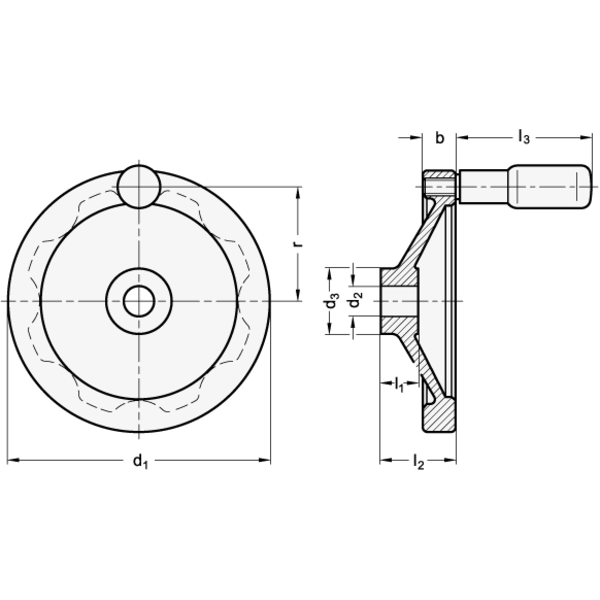 Scheibenhandräder GN 321 sind auf der Rückseite mit Griffmulden versehen.