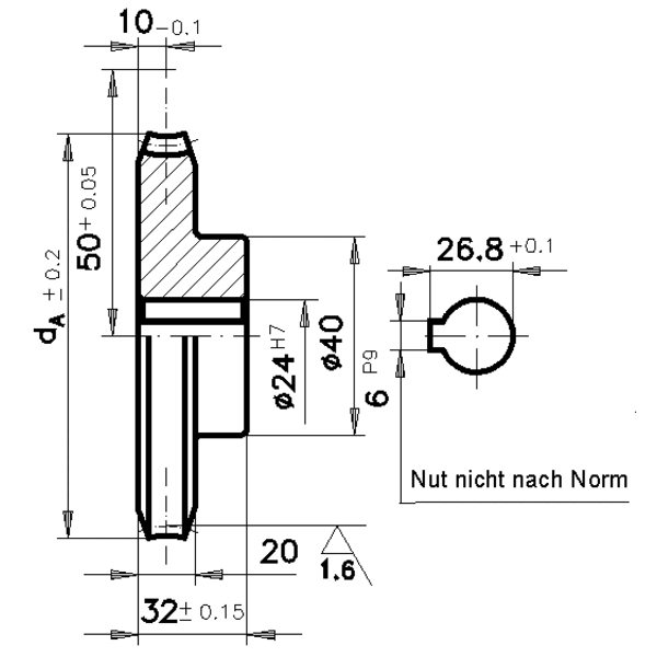 Präzisions-Schneckenrad Achsabstand 50 mm i = 35 35 Zähne