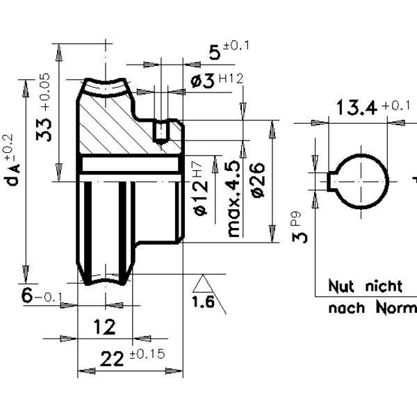 Präzisions-Schneckenrad Achsabstand 33 mm i = 30 30 Zähne