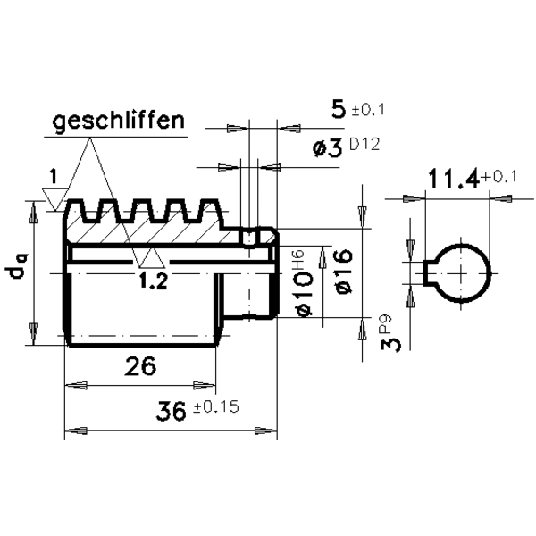 Präzisions-Schnecke Achsabstand 33 mm i = 14