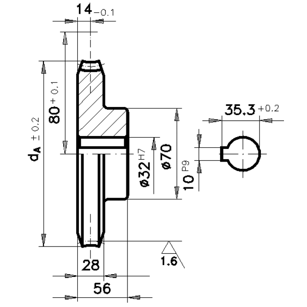 Präzisions-Schneckenrad Achsabstand 80 mm i = 50 50 Zähne