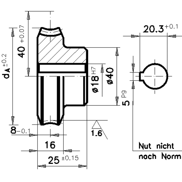 Präzisions-Schneckenrad Achsabstand 40 mm i = 30 30 Zähne