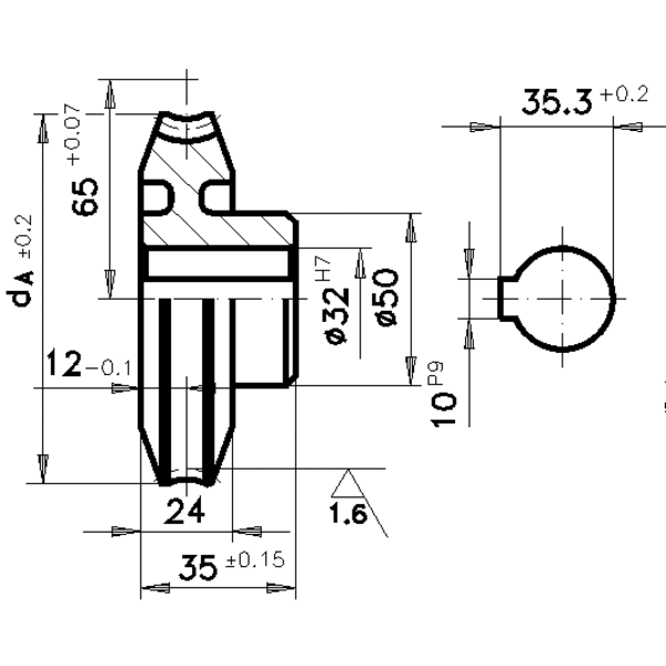 Präzisions-Schneckenrad Achsabstand 65 mm i = 50 50 Zähne