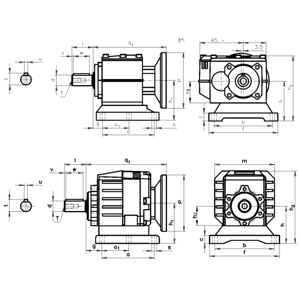 Stirnradgetriebemotor HR/I 0,18kW 230/400V 50Hz Bauform B3