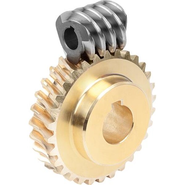 Ein Schneckenradsatz besteht aus einer Schnecke und einem Schneckenrad. Geeignet zur Herstellung von Schneckengetrieben mit einem Achswinkel von 90°. Mit einem Schneckengetriebe sind sehr große Übersetzungen ins Langsame mit nur einer Stufe realisierbar.