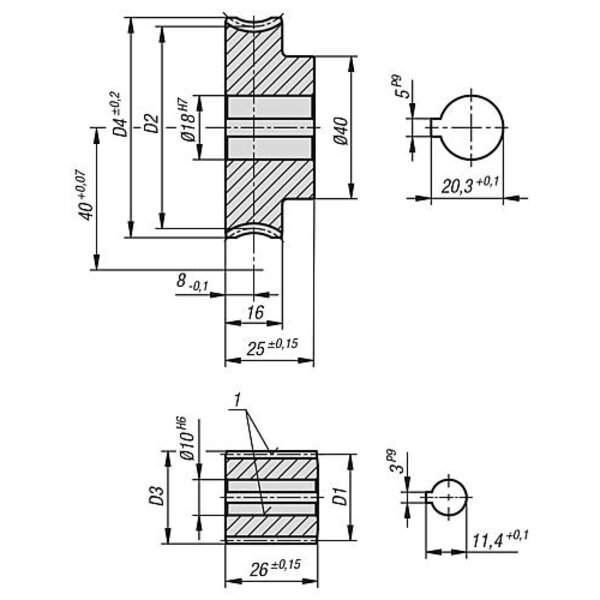 Die Verzahnung hat die Flankenform K. Der Eingriffswinkel beträgt 15°. Die Schneckenradsätze sind fertig gebohrt.