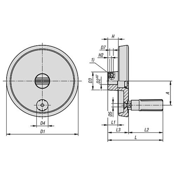 Die Handräder können durch Querverstiftung oder durch eine Zylinderschraube DIN 6912 und einer Vorlegscheibe K0173 axial durch Passfederverbindung auf der Welle befestigt werden.