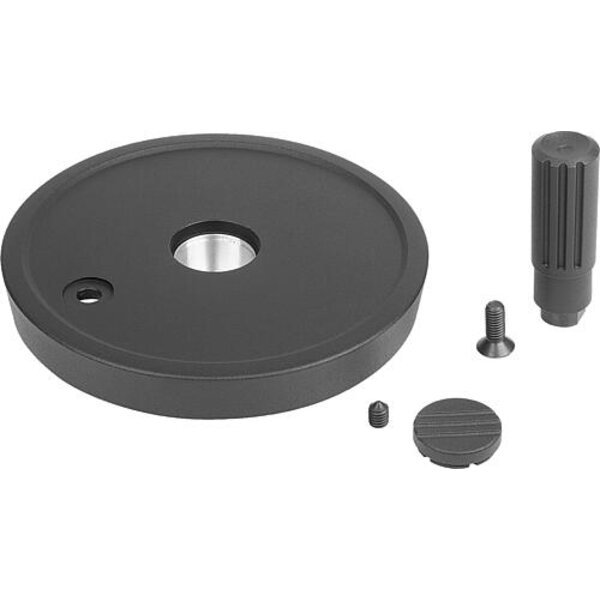 HANDRAD D1=100, FORM:C PASSBOHRUNG MIT NUT, D2=10, ALUMINIUM SCHWARZ, KOMP:THERMOPLAST, STAHLTEILE: STAHL,