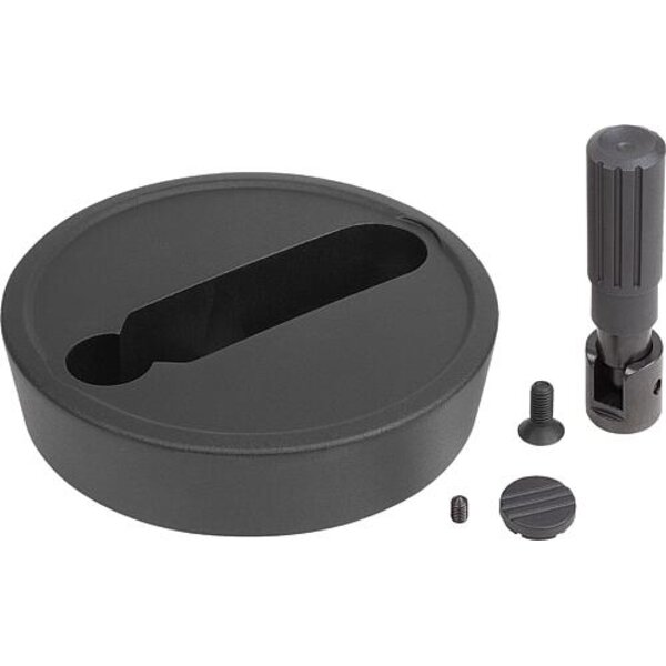 HANDRAD D1=100, FORM:A PASSBOHRUNG + QUERBOHRUNG, D2=10, ALUMINIUM SCHWARZ, KOMP:THERMOPLAST, STAHLTEILE: STAHL,