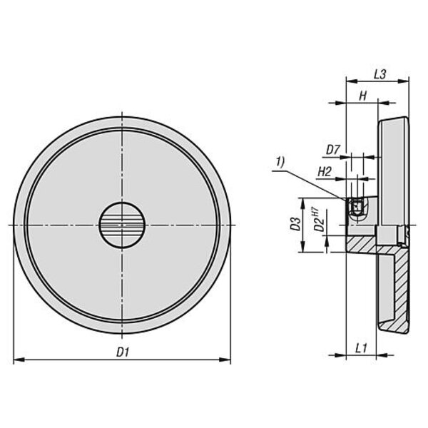 HANDRAD D1=100, FORM:A PASSBOHRUNG + QUERBOHRUNG, D2=10, ALUMINIUM SCHWARZ PU...