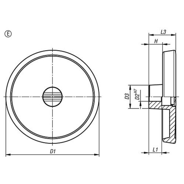HANDRAD D1=80, FORM:E MIT PASSBOHRUNG, D2=10, ALUMINIUM SILBER PULVERBESCHICH...