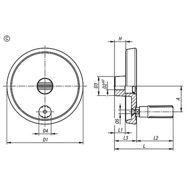 HANDRAD D1=100, FORM:C PASSBOHRUNG MIT NUT, D2=12, ALUMINIUM SILBER, KOMP:THE...