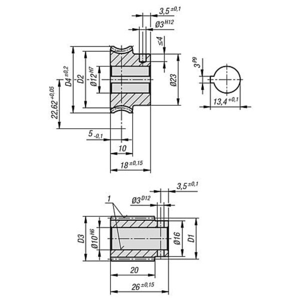 SCHNECKE, RECHTSGÄNGIG, D1=18,7, STAHL EINSATZGEHÄRTET
